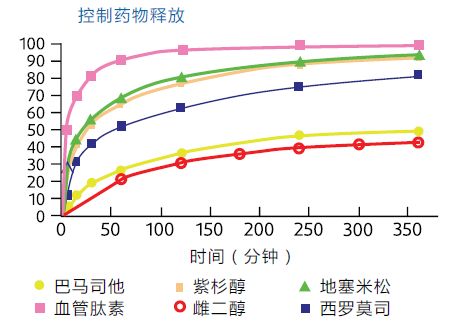 PC聚合物的灵活化学性质使对各种单体的修饰成为可能,从而可根据不同的活性物质定制聚合物,微调药物洗脱性能。药物-器件的突破性组合,通过可控药物释放表现出临床优势,凡特鲁斯的专长很适合为组合产品的开发和商业化提供服务。