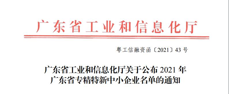 近日,我司荣获2021年度广东省“专精特新”企业认定!