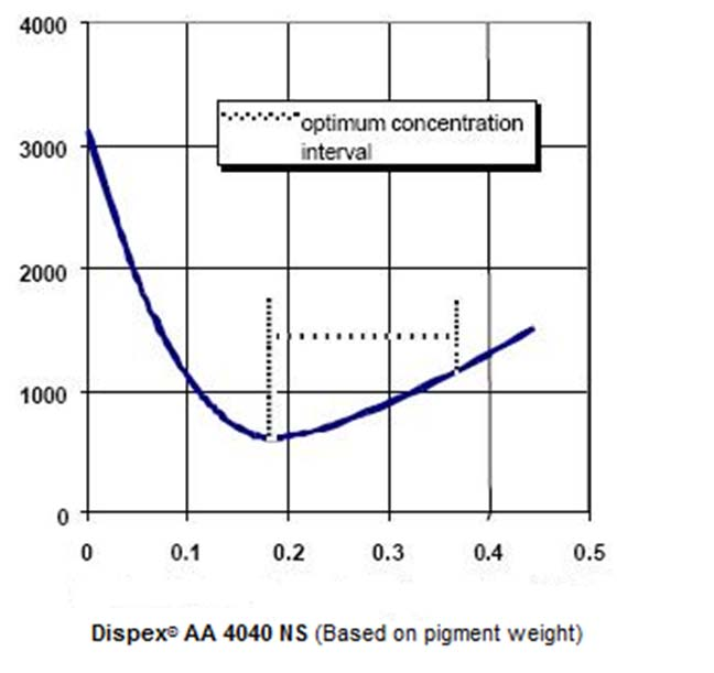 加入Dispex®AA4040NS建议在含有分散剂的重搅拌水中加入颜料,而不是在颜料浆中加入分散剂。一般来说,最终制备的pH应在8.5区域,以获得最佳的分散效率。