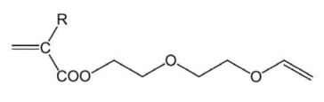 VEEA/VEEM是无色透明,低粘度双重固化单体。其既有自由基聚合的丙烯酸官能团,也有阳离子固化的乙烯氧基基团。