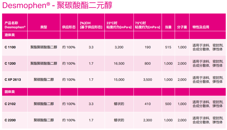 科思创 Desmophen 聚碳酸酯二元醇 C1100、C1200、C XP 2613、C2102、C2200 - Beplay官网网页