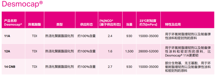 科思创 Desmocap 热活化聚氨酯固化剂 11A、12A、14CNB