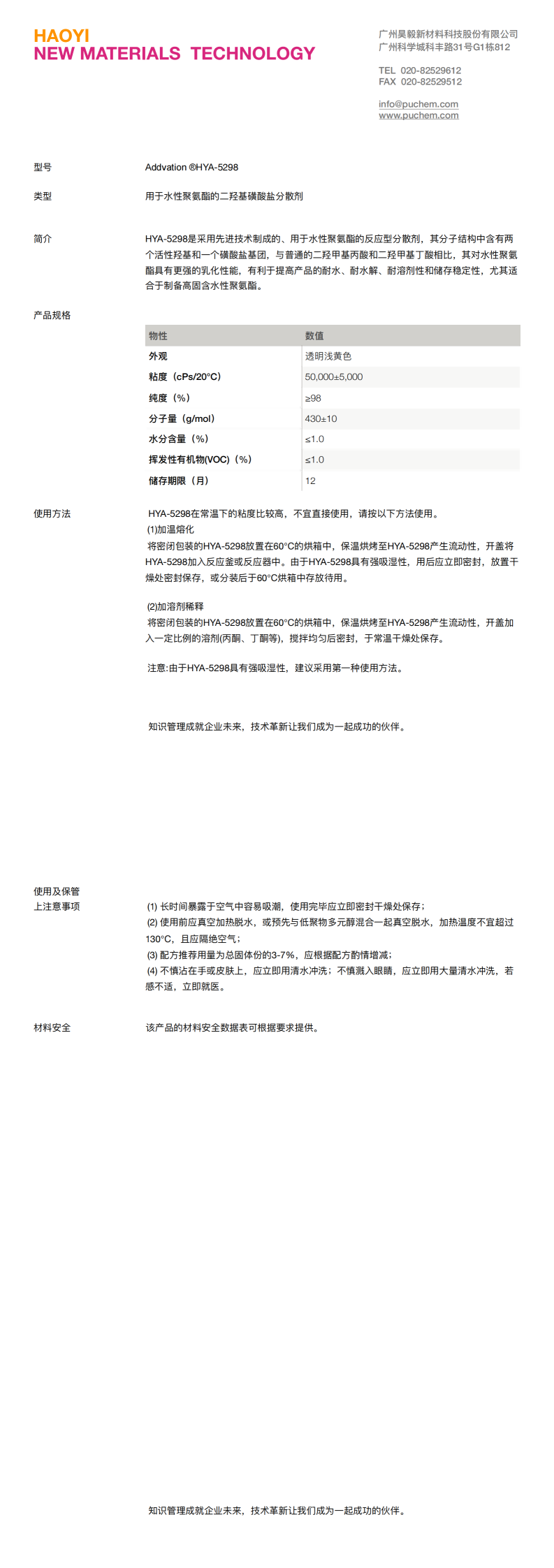 Addvation ®HYA-5298 用于水性聚氨酯的二羟基磺酸盐分散剂 - Beplay官网网页