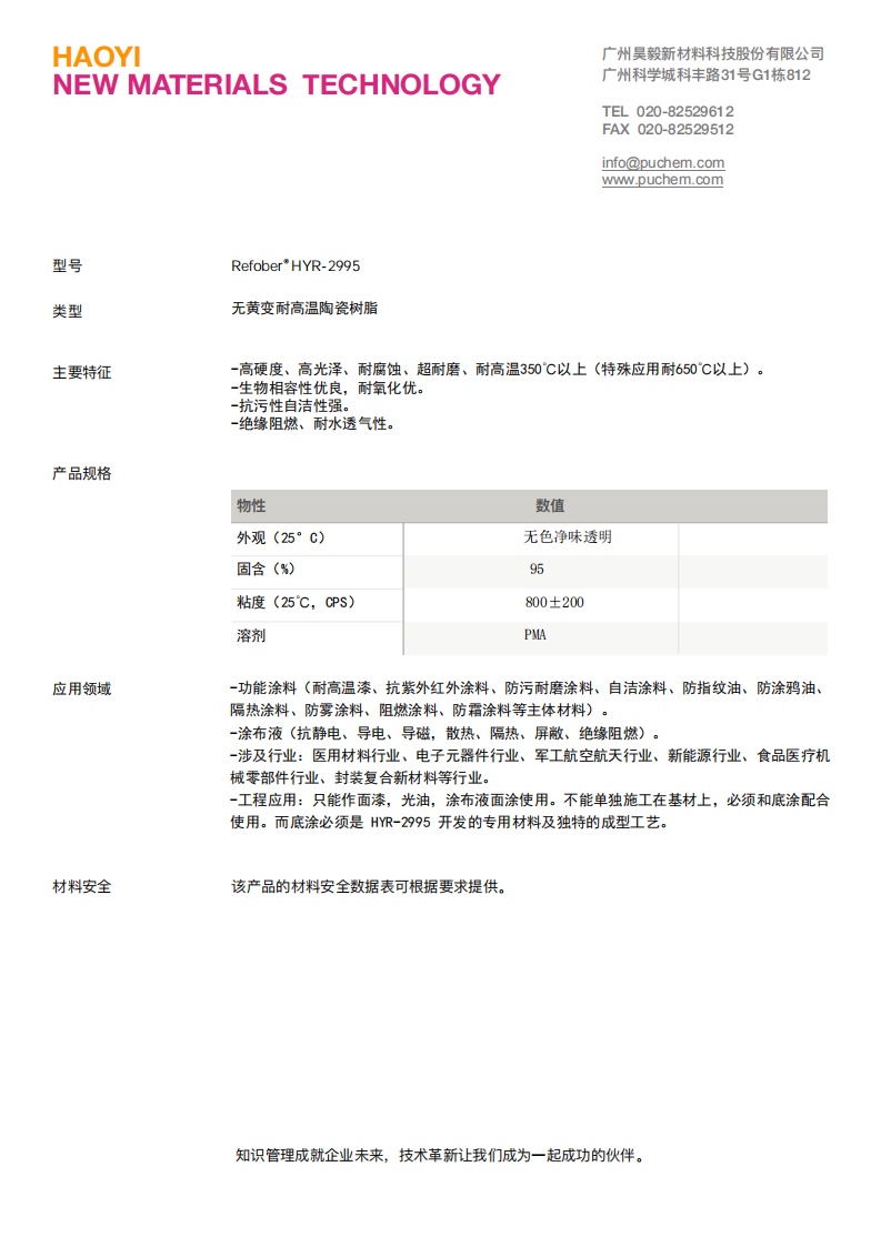 Refober® HYR-2995 无黄变耐高温陶瓷树脂 - Beplay官网网页