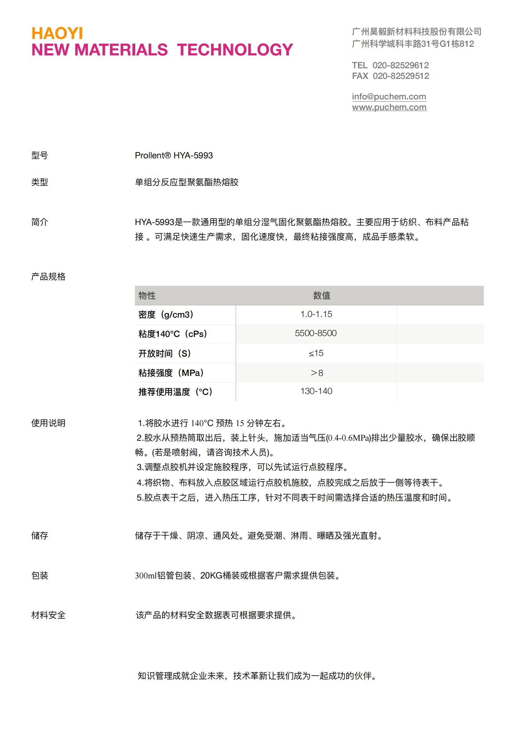 Prollent® HYA-5993 单组分反应型聚氨酯热熔胶 固化速度快、手感柔软 - Beplay官网网页