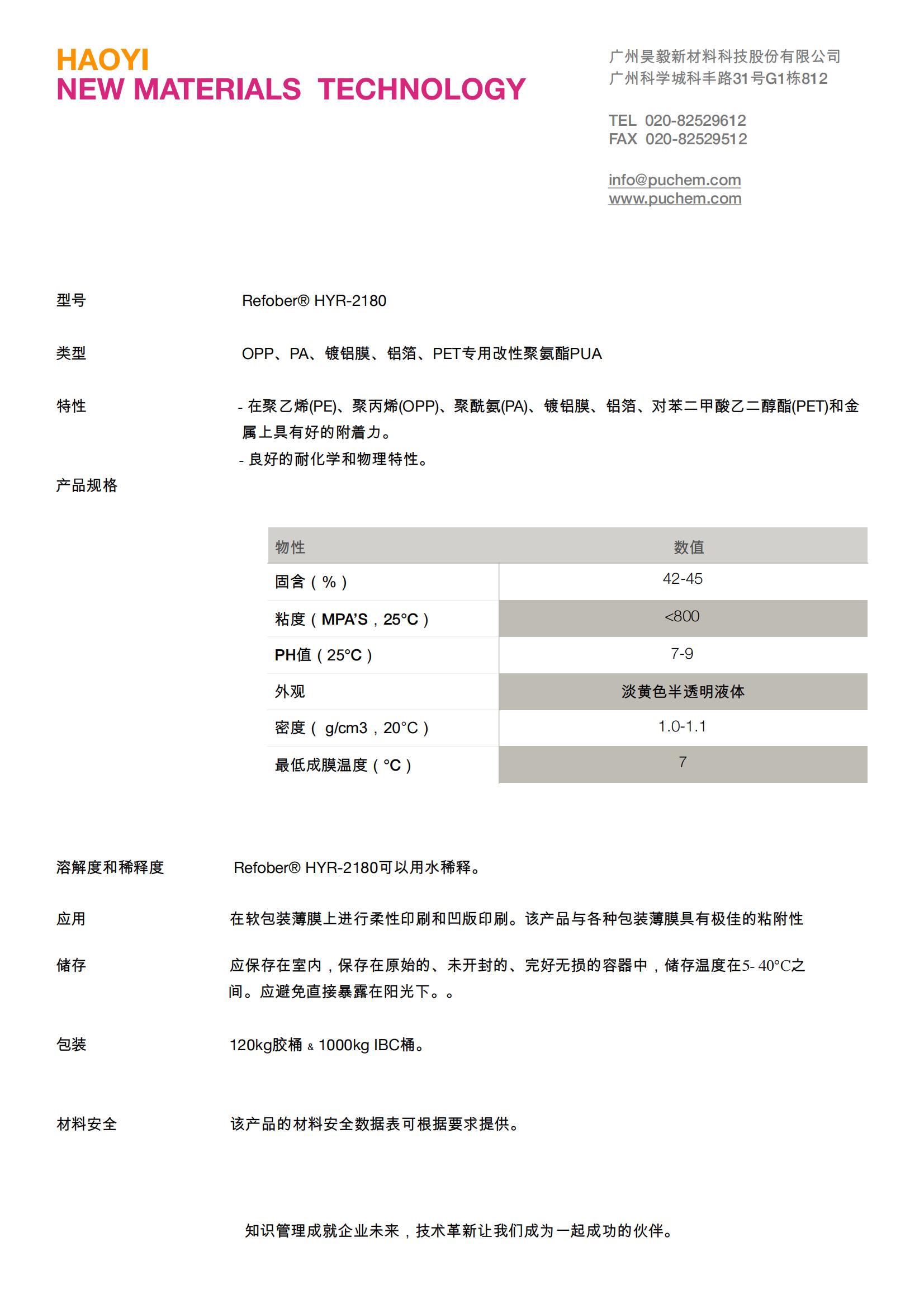 Refober® HYR-2180 OPP、PA、镀铝膜、铝箔、PET专用改性聚氨酯PUA - Beplay官网网页