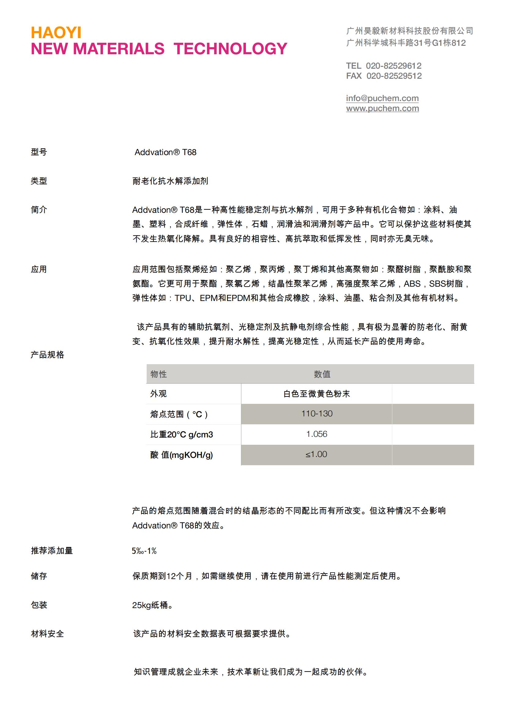 Addvation® T68 耐老化抗水解添加剂 - Beplay官网网页