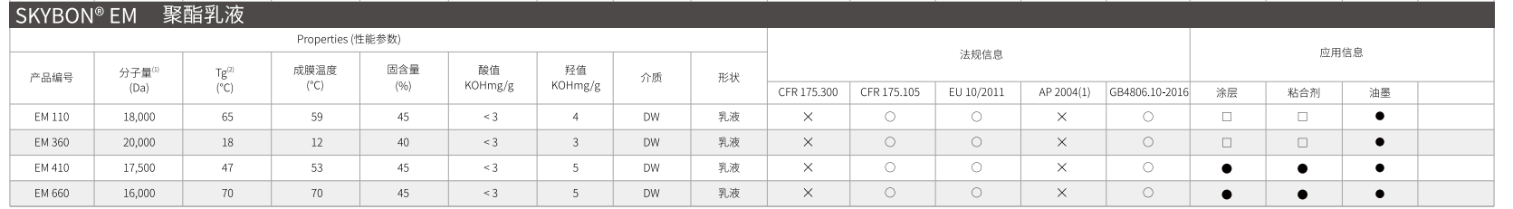 SKYBON® EM 聚酯乳液 水分散性聚酯树脂 EM-110 EM-360 EM-410 EM-660 - Beplay官网网页