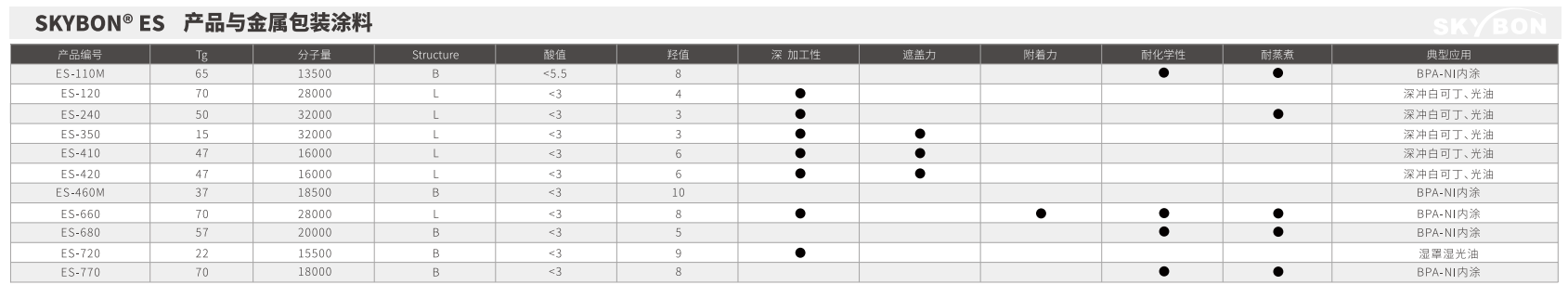 SKYBON@ES 产品与金属包装涂料 ES-110M ES-240 ES-420 ES-660