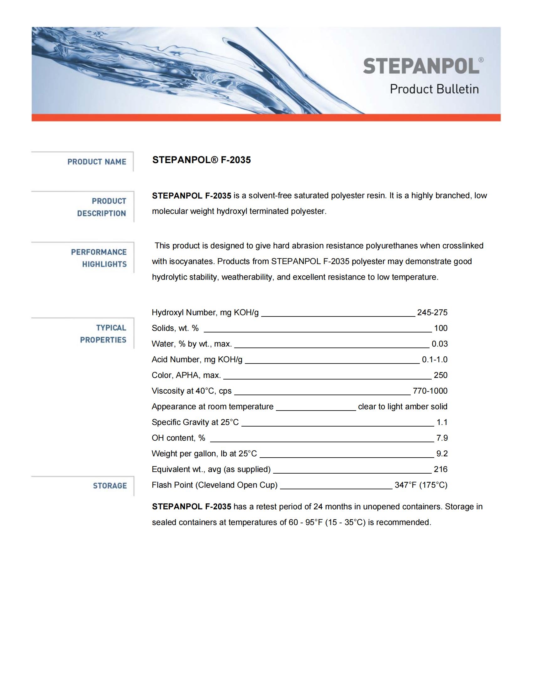 STEPANPOL® F-2035 无溶剂饱和聚酯树脂 良好的水解稳定性、耐候性和优异的低温性能 - Beplay官网网页