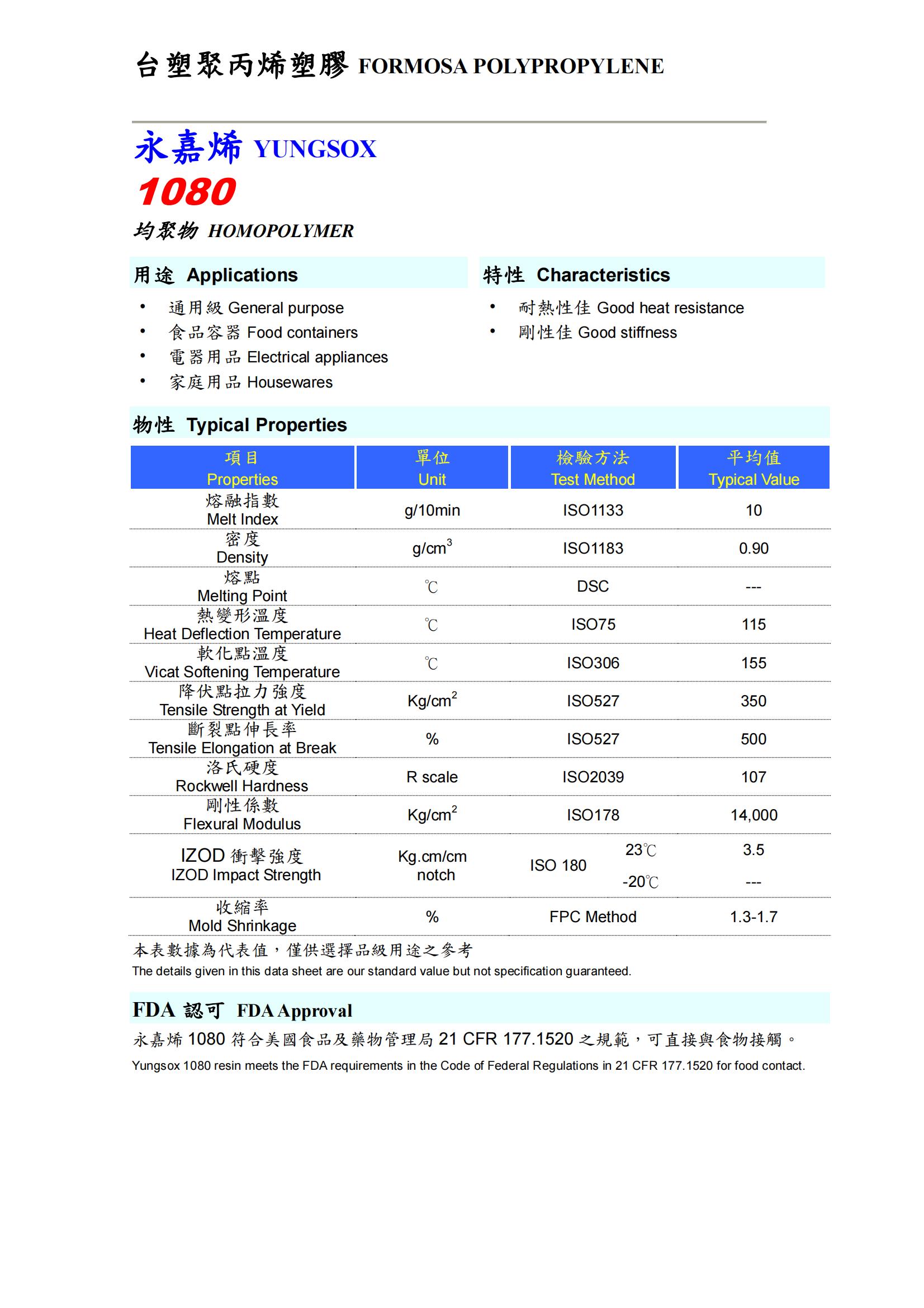 台塑 永嘉烯 1080 台塑聚丙烯塑胶 - Beplay官网网页