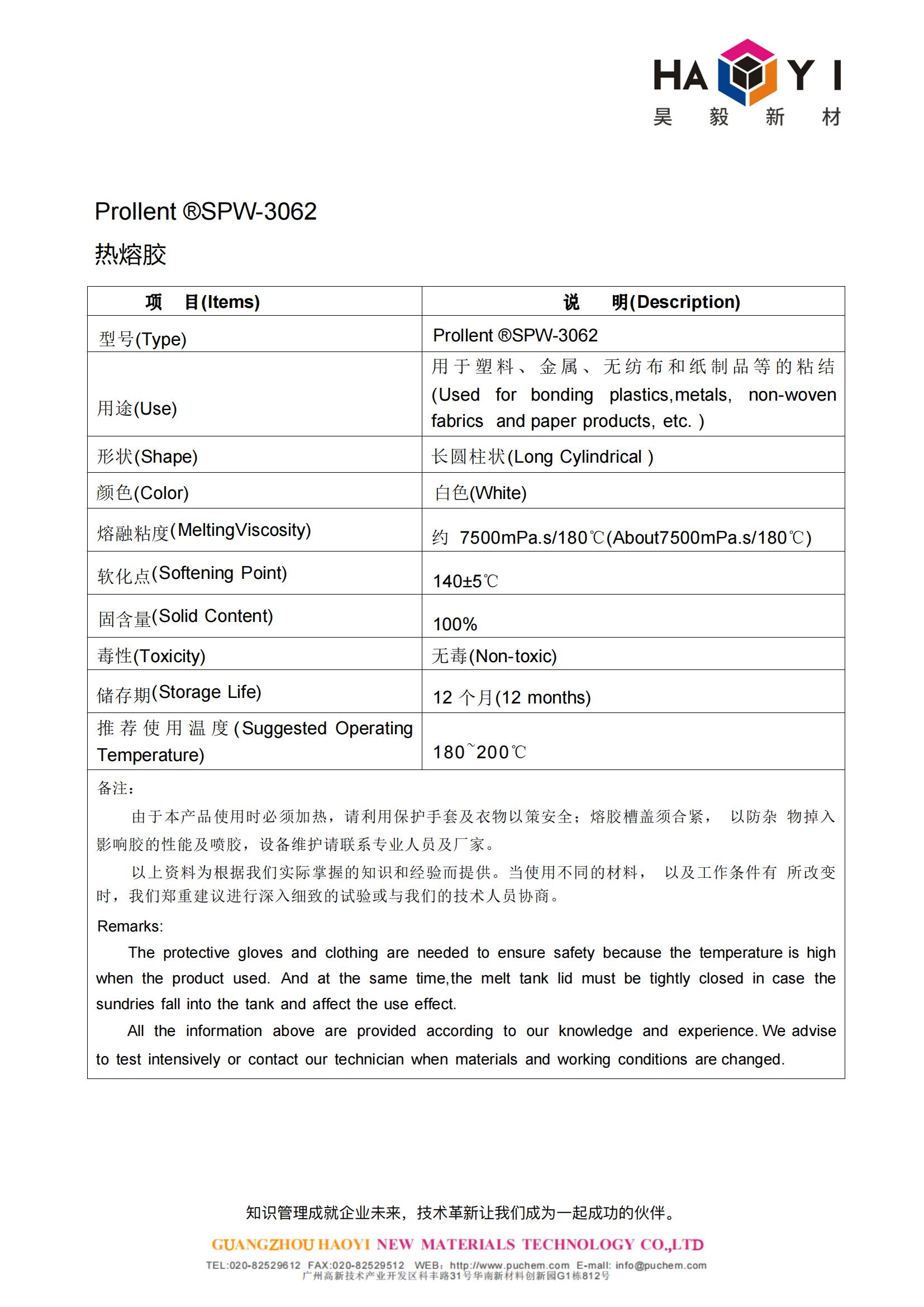 Prollent ®SPW-3062热熔胶 用于塑料 、金属 、无纺布和纸制品等的粘结 - Beplay官网网页