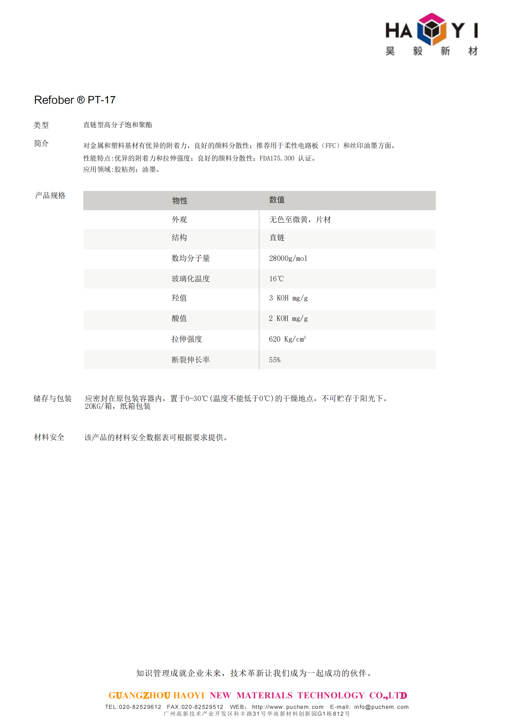 Refober ® PT-17直链型高分子饱和聚酯,用于柔性电路板(FFC)和丝印油墨