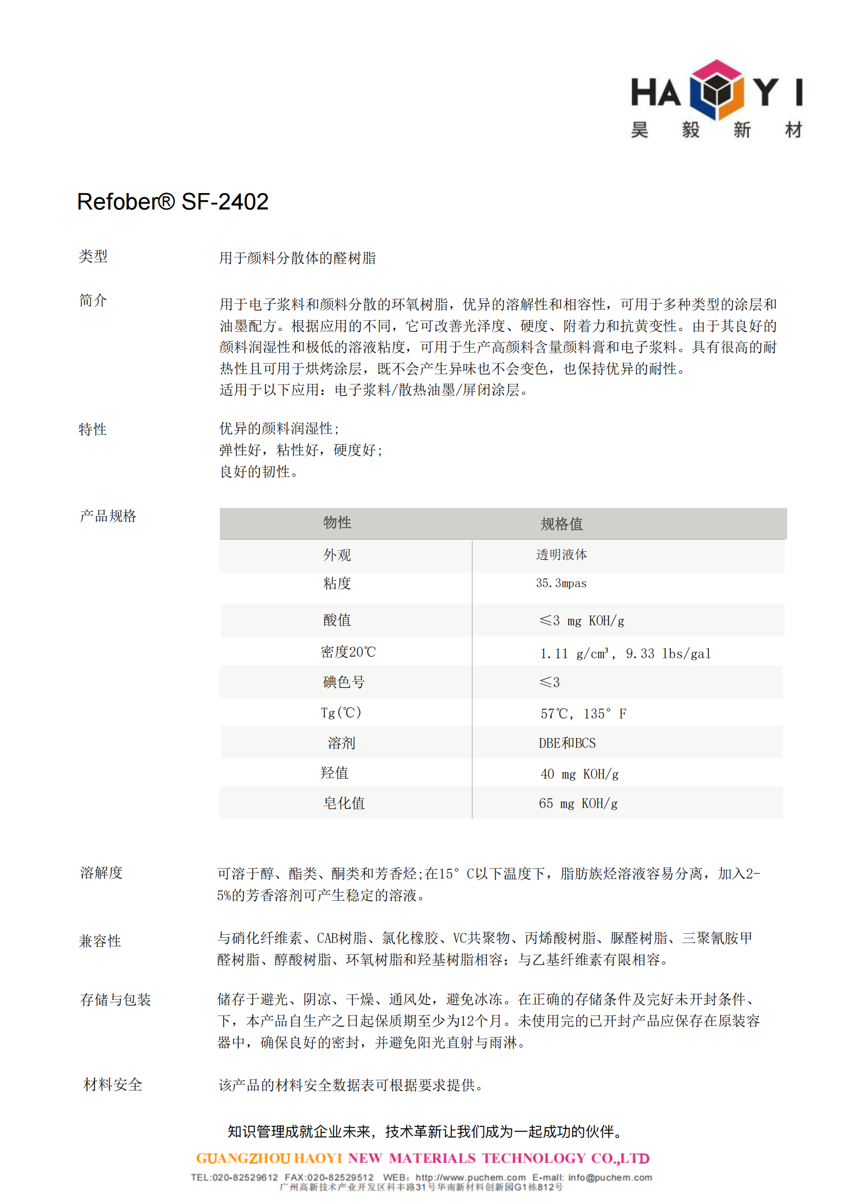 Refober®SF-2402_单组分导电油墨专用树脂(2)适用于以下应用:电子浆料/散热油墨/屏闭涂层