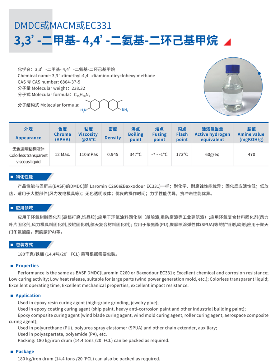 3,3’-二甲基- 4,4’-二氨基-二环己基甲烷 DMDC或MACM或EC331