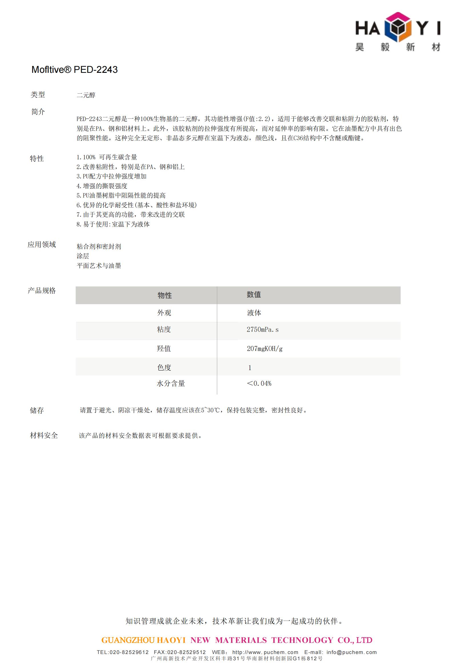 Mofltive® PED-2243 一种100%生物基的二元醇 在油墨配方中具有出色的阻聚性能