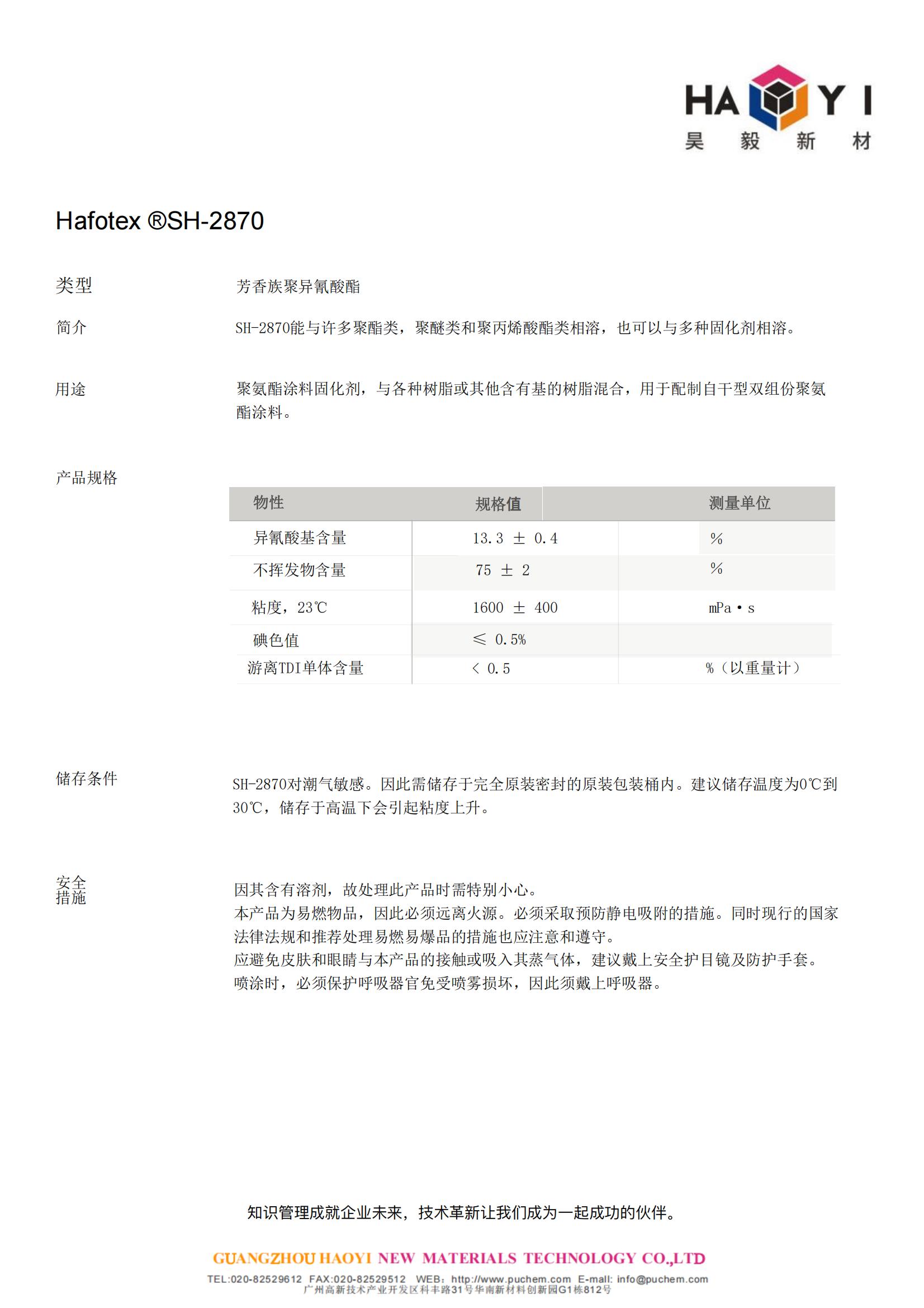 Hafotex ®SH-2870 芳香族聚异氰酸酯 聚氨酯涂料固化剂 - Beplay官网网页