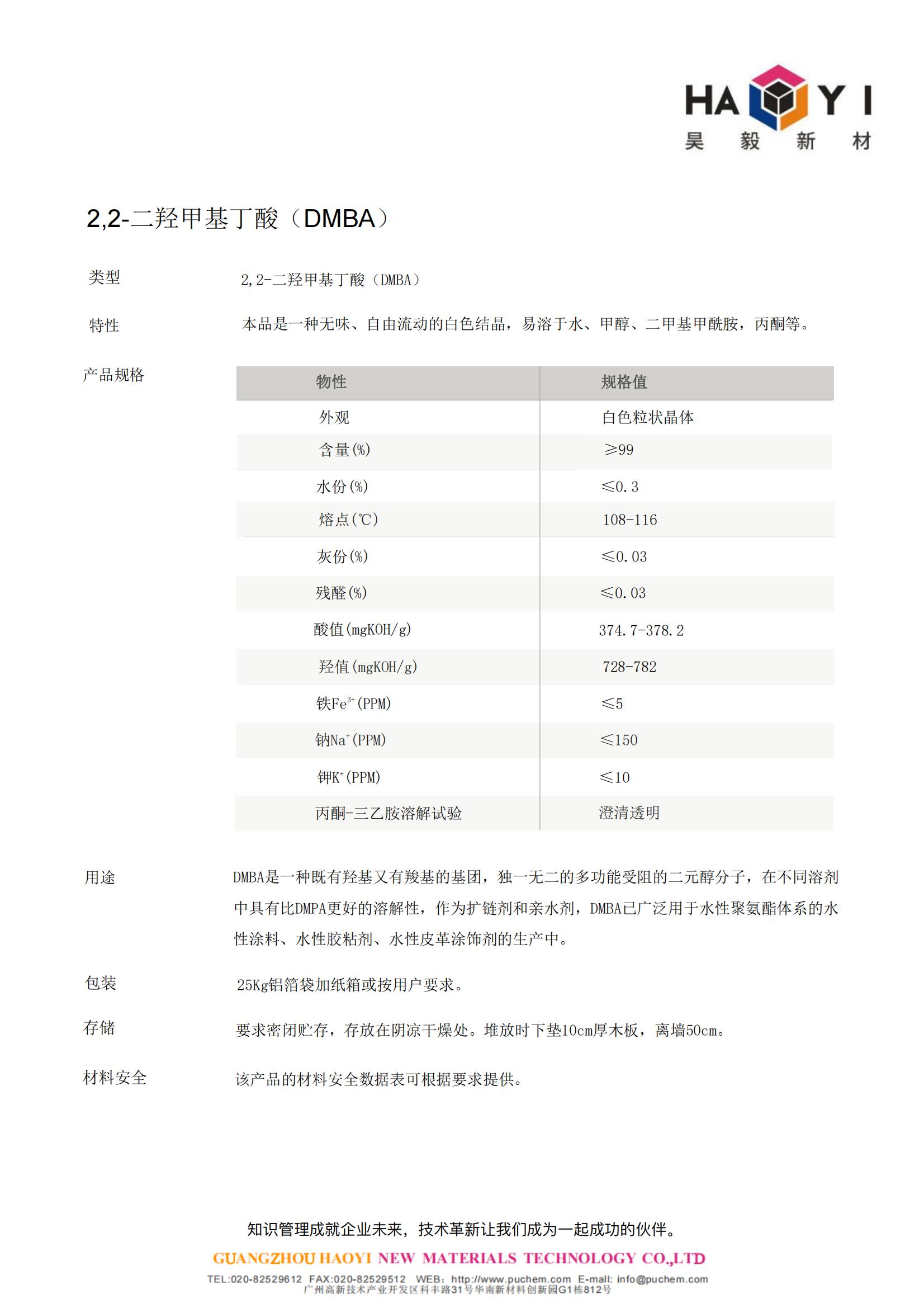 2,2-二羟甲基丁酸(DMBA) 作为扩链剂和亲水剂,DMBA已广泛用于水性聚氨酯体系的水性涂料、水性胶粘剂、水性皮革涂饰剂的生产 - Beplay官网网页
