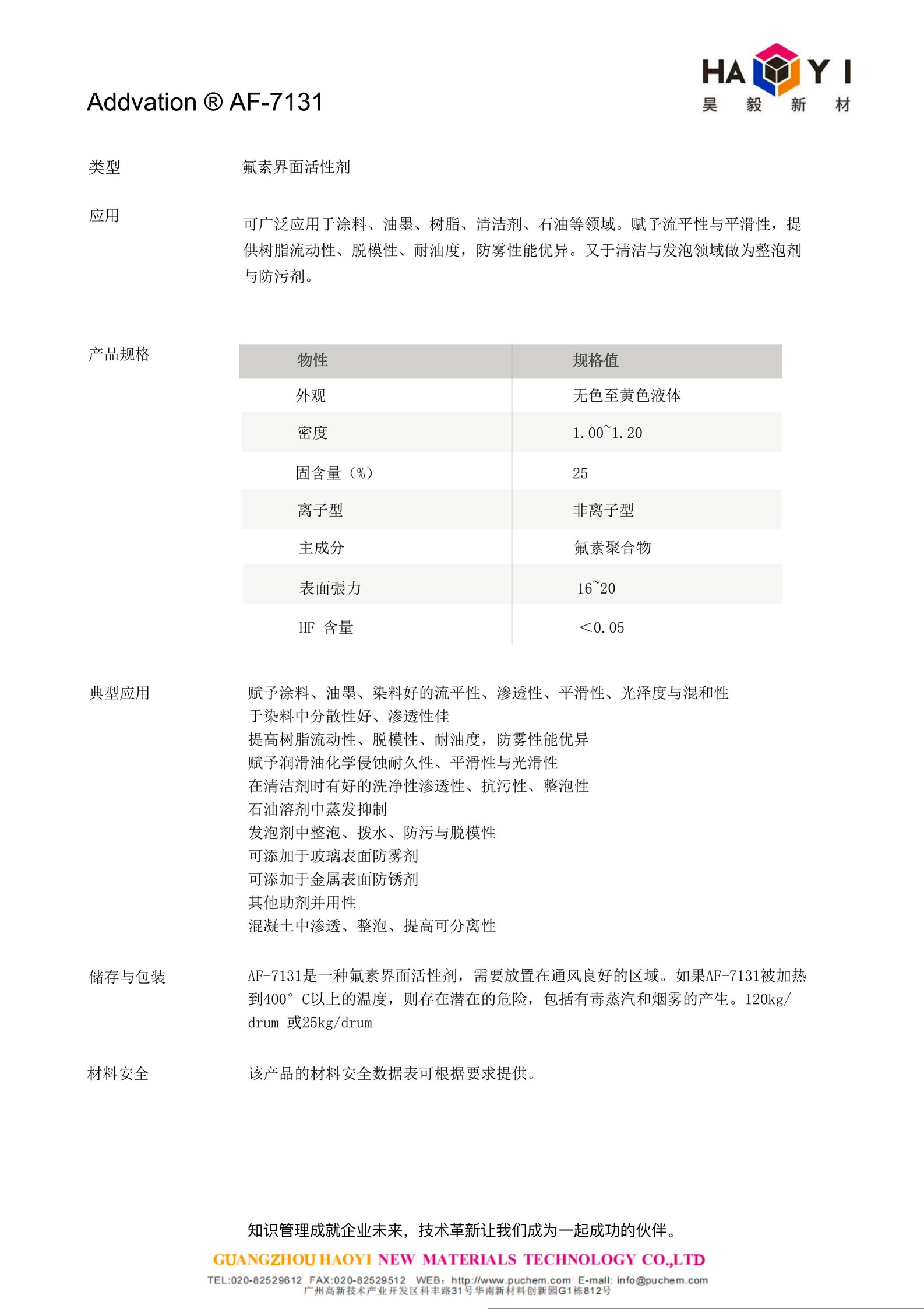 Addvation ®AF-7131 氟素界面活性剂 应用于涂料、油墨、树脂、清洁剂、石油 - Beplay官网网页