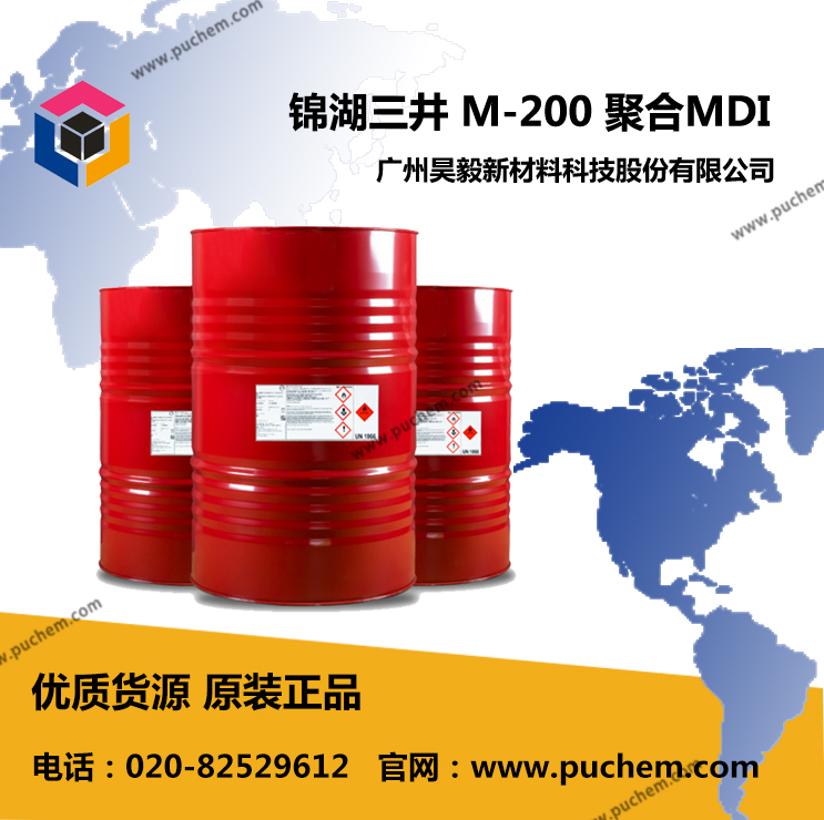 Cosmonate M-200是聚合MDI,通常用于制造硬质和半硬质聚氨酯泡沫。Cosmonate M-200在常温下液化,易于处理并储存在-20℃的容器内。它是无溶剂形式,具有2.7的平均有机功能,最大值为125cp(25℃),与4,4'-二苯基甲烷二异氰酸酯的单体MDI和二聚体,三聚体和四聚体以上的低聚物混合。